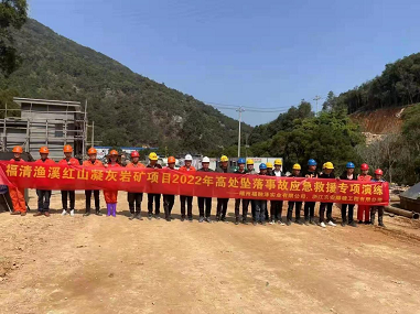 京安公司福清红山矿项目部举行高处坠落事故应急演练活动